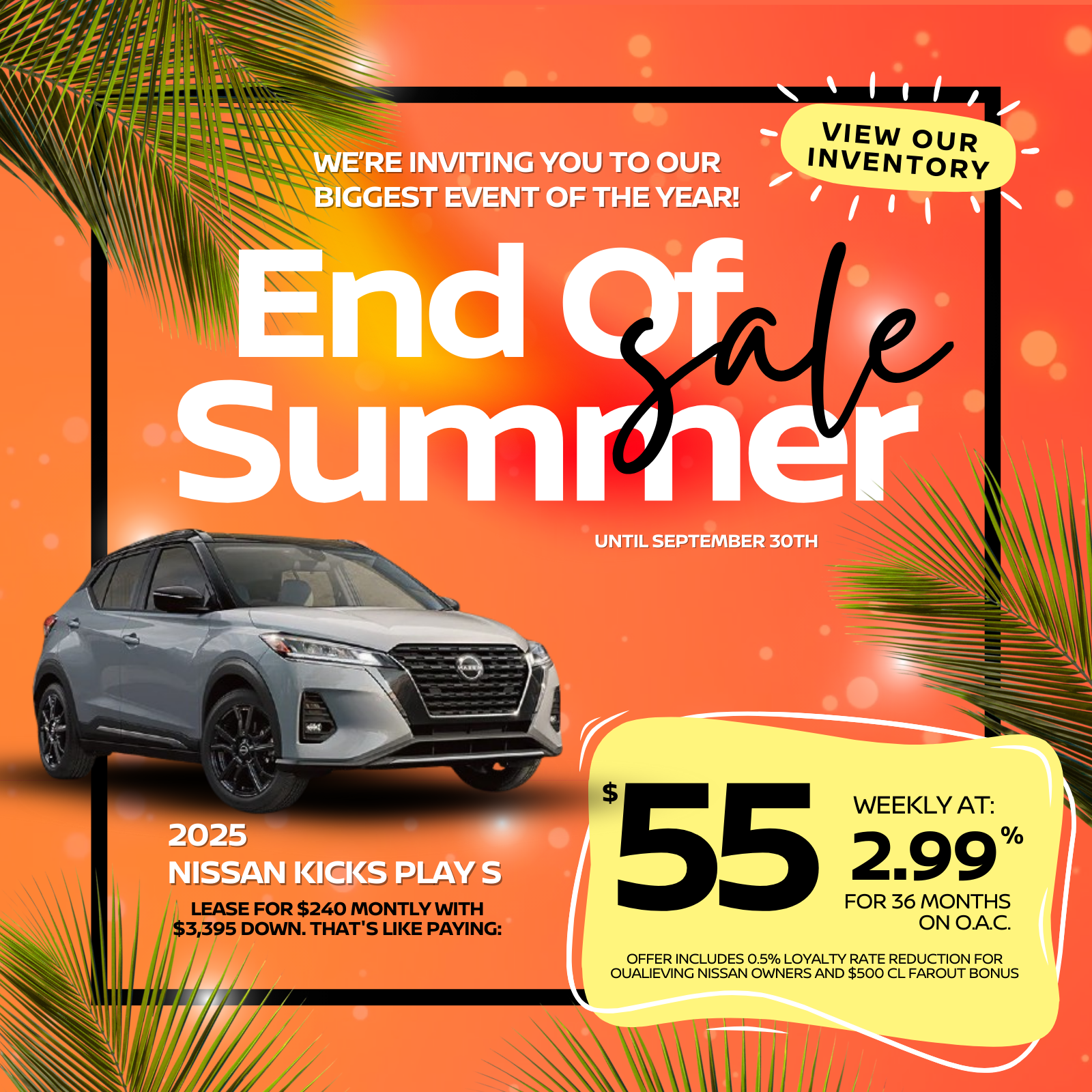0% finance available on approved credit (OAC) for up to 24 months on 2025 Sentra models. $500 Clearout Bonus applied to eligible purchases. Offer valid until September 30, 2025. Conditions apply. See dealer for details.